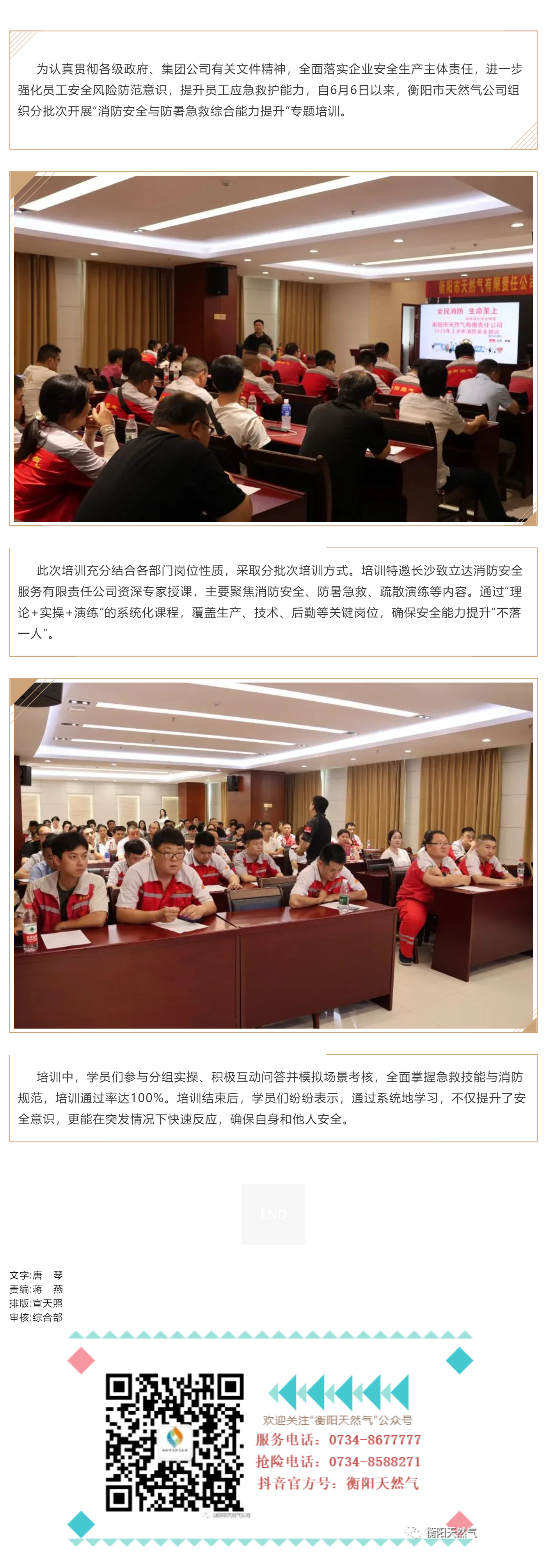 衡陽市天然氣有限責任公司開展消防安全與防暑急救綜合能力提升培訓